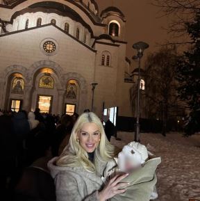Prvi Božić naše glumice sa bebom: Ispred Hrama drži sina u naručju i pale badnjak, prizori tope srca (Foto)