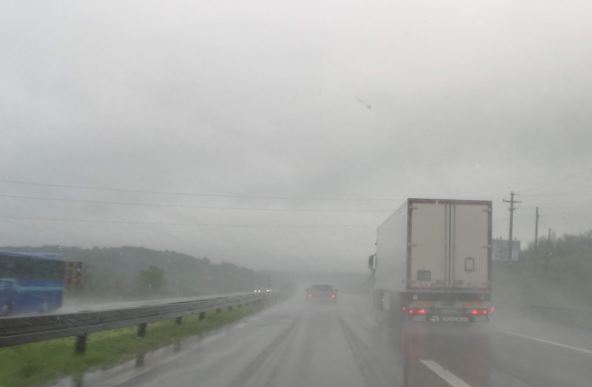 Jak pljusak ograničava i smanjuje vidljivost, a veća količina vode predstavlja još jednu opasnost, jer su sva oštećenja kolovoza ispunjena vodom, pa se ne vide.