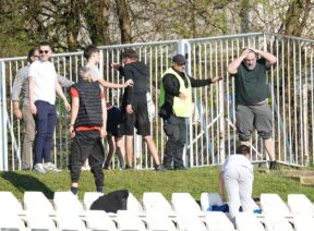 Haos na Banovom brdu: Izbila tuča na tribinama, igrač preskočio ogradu (Foto)