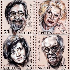 Poštanske marke sa likovima srpskih glumaca Dragan Nikolić, Ružica Sokić, Bora Todorović...