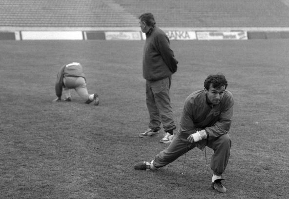 Fudbaleri Crvene zvezde treniraju na stadionu Marakana pred utakmicu Lige šampiona 1991. godine Foto: MN Press