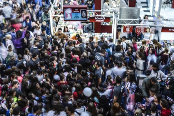 Mlada jutjuberka Jana Dačović i glumac Luka Raco izazvali su nezapamćenu gužvu na beogradskom Sajmu knjiga prilikom potpisivanja knjiga.