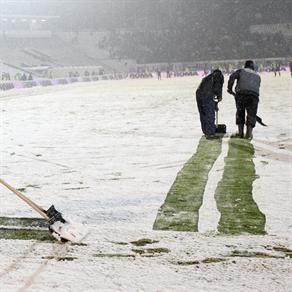 Teren je morao da bude čišćen i pre derbija kola i u poluvremenu. Fudbaleri Partizana i Vojvodine imali su velike probleme.