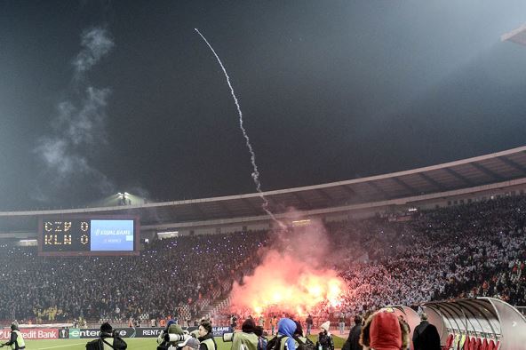Crvena zvezda - Keln bakljada navijača Kelna i koreografija delija FOTO