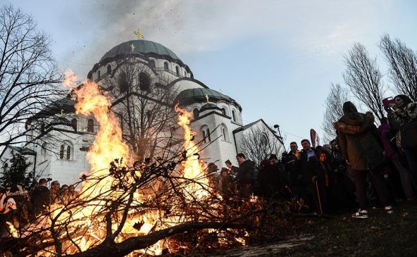 Paljenje badnjaka ispred Hrama Svetog Save 2018. FOTO