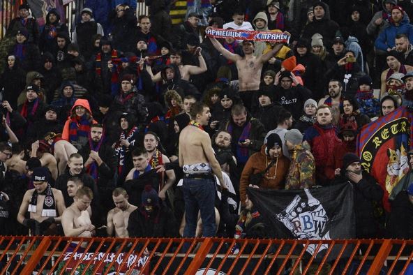 Navijačima CSKA nije bilo hladno, ni od pljuska, ni od beogradske košave. Poskidali su majice i dukseve, a onda i zapalili veliki broj baklji tokom drugog poluvremena.