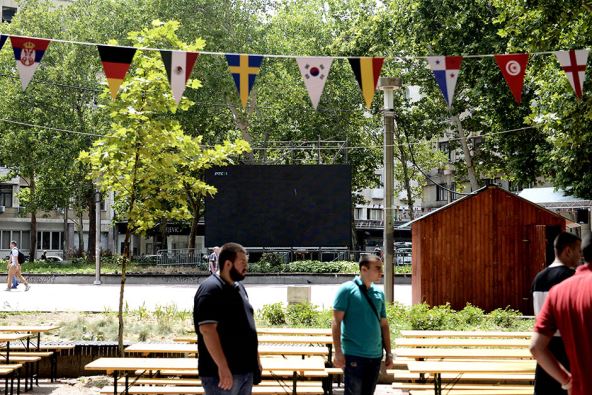 Na Trgu Nikole Pašića postavljen je veliki video bim koji će u narednih mesed dana emitovati sve utakmice Svetskog prvenstva u fudbalu. Postavljene su tribine i klupe, a biće postavljeni i kiosci na kojima će se prodavati hrana i piće.