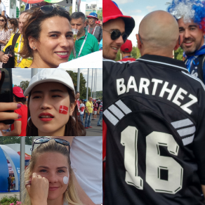 Mnogo lepih devojka, "lažni" Fabijen Bartez, još lepih devojaka, redovi za bezalkoholno pivo, srpski navijači sa trobojkom, originalno odeveni Francuzi i Danci i dvojica "poglavica" iz Brazila... "Lužnjiki" danas.