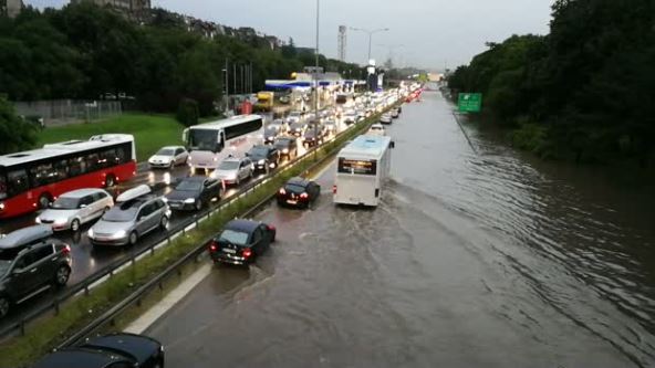 Jake padavine poplavile su delove Beograda, a najveća gužva nastala je na autoputu na Novom Beogradu, gde je kolovoz potpuno pod vodom. Vozila se kreću kroz bujicu u nadi da će izaći na suvo.