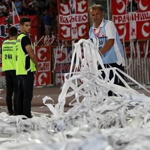 Navijači Crvene zvezde bacili su veliki broj rolni papira na atletsku stazu, na startu meča meča protiv Suduve. Počela je fudbalska sezona u Ljutice Bogdana.