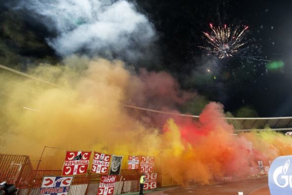 Na startu nove superligaške sezone fudbaleri Crvene zvezde savladali su Javor rezultatom 2:0, a "delije" su uz bakljadu i vatromet na severnoj tribini proslavili uspešan start sezone.