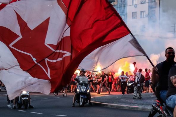 Crvena zvezda je protiv Olimpijakosa (3-1) osvojila velika tri boda u drugom kolu Lige šampiona. Sve je počelo okupljanjem navijača dva "bratska" kluba na Terazijama i njihovom šetnjom do stadiona "Rajko Mitić" uz bakljade i pesmu.