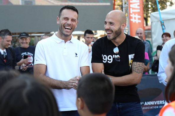 Fudbaleri Partizana Miletić, Ostojić i Sadik druženje sa mališanima na Trgu Republike FOTOGRAFIJE