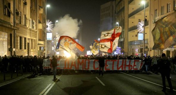 Navijači Crvene zvezde okupili su se ispred ambasade Crne Gore u Beogradu kako bi izrazili protest zbog usvajanja spornog Zakona o slobodi veroispovesti u toj zemlji.
