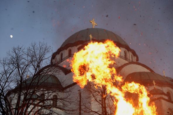 Paljenje badnjaka ispred Hrama Foto: MONDO/Stefan Stojanović