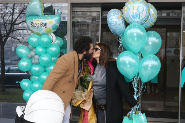 Ponosnu mamu, Seku Aleksić je napustila privatnu kliniku u kojoj je pre četiri dana na svet donela drugog sina Jovana. Uz balone i poklone, ih je iz porodilišta izveo njen suprug Veljko.