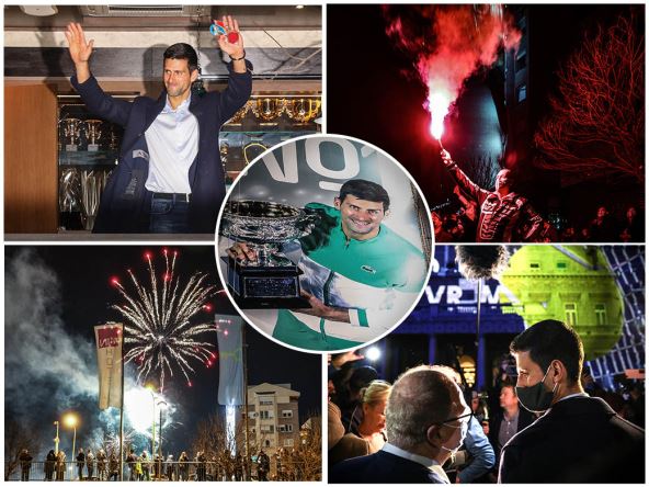 Žurka ispred Novakovog restorana na Novom Beogradu, stotine beograđana je uz bakljadu, vatromet i otkrivanje bilborda pozdravilo rekordnih 311 nedelja u vrhu ATP liste srpskog tenisera. Nakon slavlja, Novak se uputio na svečani prijem u Skupštini grada Beograda.