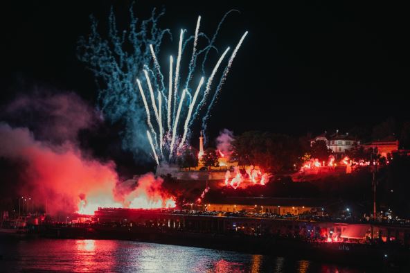 crvena zvezda navijači proslava titule bakljada vatromet reka kalemegdan