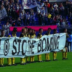 1/4Pogledaj fotogalerijuTokom NATO agresije na Jugoslaviju 1999. godine srpski sportisti su širom sveta slali poruke da se bombardobanje zaustavi. Foto: MN Press