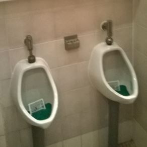 Kakva zabava u toaletu jednog minhenskog kafića! U muškom wc-u ovako izgledaju pisoari. Sve što treba da uradite je da pogodite crvenu lopticu u golu i voda će krenuti!
