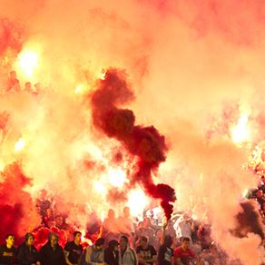 1/54Pogledaj fotogalerijuTri velike bakljade prekidale su 147. večiti derbi u Humskoj. Foto: Petar Stojanović - MONDO