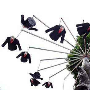 Neobična skulptura u centru Beograda na Topličinom Vencu već danima budi znatiželju među prolaznicima. Zapravo se radi o velikoj igrački koju možete vrteti, doktorskom radu Milice Ružić, inspirisane pesmom "Dolap" Milana Rakića.