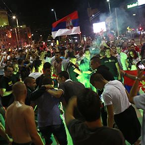 Vaterpolo reprezentacija Srbije osvojila zlatnu medalju-proslava na ulicama Beograda.
