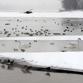 Veliki broj ptica, suočen sa hladnim talasom zbog kojeg je i Dunav zaleđen, utočište je našlo u kanalizacionom ispustu na Zemunskom keju.