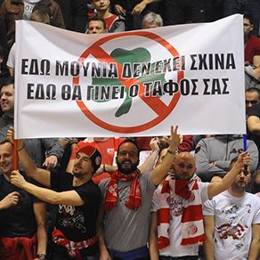 Spektakularna slika na tribinama krcate dvorane "Aleksandar Nikolić" gde je većina navijačkih poruka ispisana na grčkom jeziku, kao da se meč Evrolige između Crvene zvezde i Panatinaikosa igra u sred Atine.