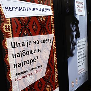 Na dan svetog Save - školske slave, širom Beograda su u okviru akcije "Negujmo srpski jezik" postavljeni posteri na kojima su Ivo Andrić, Isidora Sekulić, Miloš Crnjanski, narodne poslovice i zagonetke.
