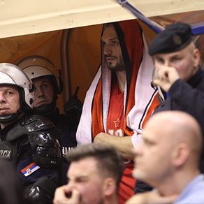 Košarkaš Crvene zvezde Marko Simonović je nakon prigovora sudijama isključen u finišu derbi meča protiv Partizana, gde je okružen policijom iz tunela posmatrao kraj utakmice ABA lige, koju su crveno-belih izgubili rezultatom 86:81.
