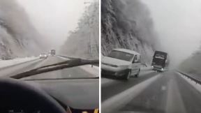 Dramatična scena na Ibarskoj magistrali: Autobus pretiče kolonu vozila na zavejanom putu (Video)