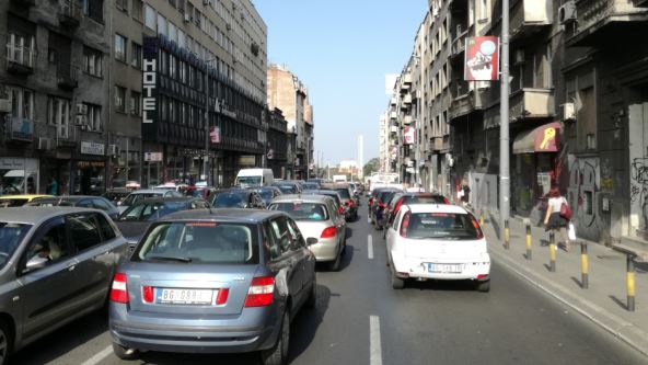 I kod Ade Ciganlije je velika kolona vozila, od Čukaričke padine u smeru ka gradu.