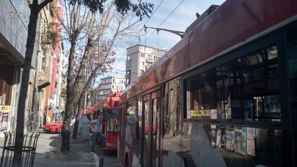 Vetar je srušio novogodišnju rasvetu na kontaktnu mrežu trolejbusa u jednoj od najprometnijih ulica u Beogradu.