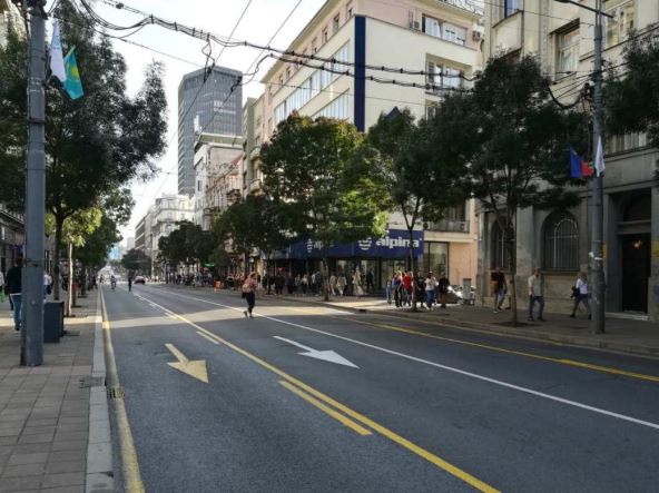 - u suprotnom smeru: Francuska – Trg republike – Makedonska – Dečanska – Trg Nikole Pašića i dalje redovnim trasama.