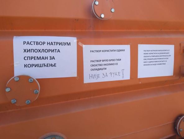 Natrijum-hipohlorit je dostupan u tankovima koje građani mogu sami da koriste, a nadležni naglašavaju da je nepotrebno skladištiti ovaj rastvor, jer posle 20 časova od točenja gubi svoje dejstvo.
