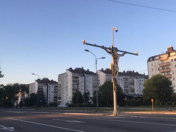 Konstrukcija raspeća Isusa Hrista bila je postavljena na uglu ulica Ivana Ribara i Jurija Gagarina.