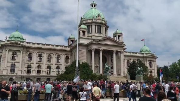 Ispred Skupštine Srbije okupljeno je oko 400 građana sa ciljem da otvoreno govore o društvenim problemima kao što su nasilje, javni izvršitelji, Kosovo, antivakcinaši.