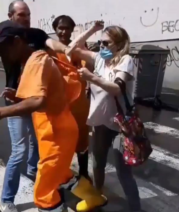 Na video-snimku je zabeleženo kako ona prilazi radniku "Čistoće" i kako fizički nasrće na njega, dok on pokušava da se odbrani od nje.