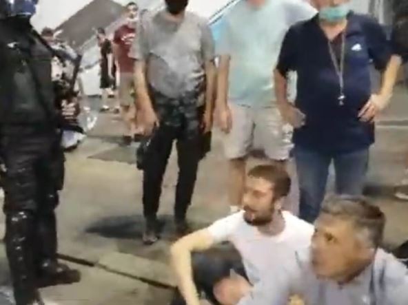 "Zbog čega ste nas prebili? Zbog onih ubačenih kriminalaca koji su izazvali incidente? Zar mislite da ne vidimo? Umesto da bacite štitove i stanete sa nama, na stranu naroda", pozivao je policajce.