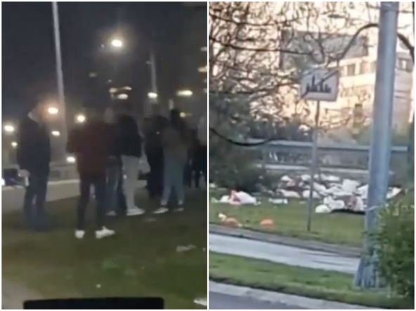 A nakon toga pojavio se i snimak od jutros sa tog dela autoputa, na kome se vidi da su studenti za sobom ostavili gomilu smeća na zelenoj površini.