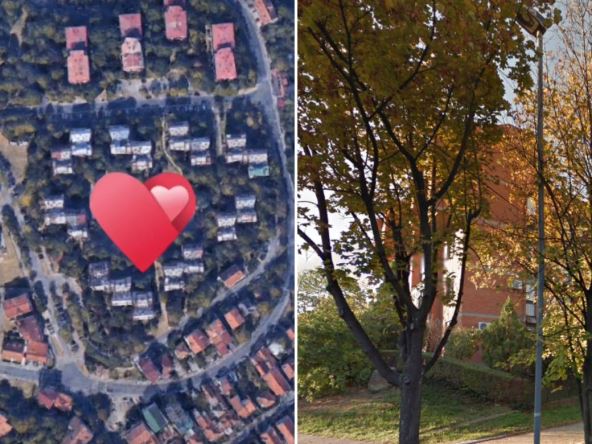 U jednom beogradskom naselju nalazi se nekoliko zgrada koje kada se posmatraju na mapi imaju oblik srca. Ovako grupisane zgrade nalaze se u beogradskoj opštini Rakovica.