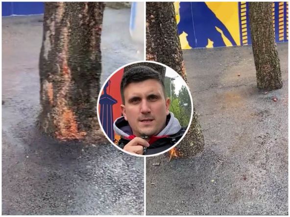 "Po nekoj mojoj proceni ljudi su isekli pet stabala velikih koji su stari već dvadesetak godina da bi bolje se video ulaz radnje ili šta već. Ova tri drveta su nekim čudom i spletom okolnosti preživela, ali su asfaltirana", kaže Simić za RTS.