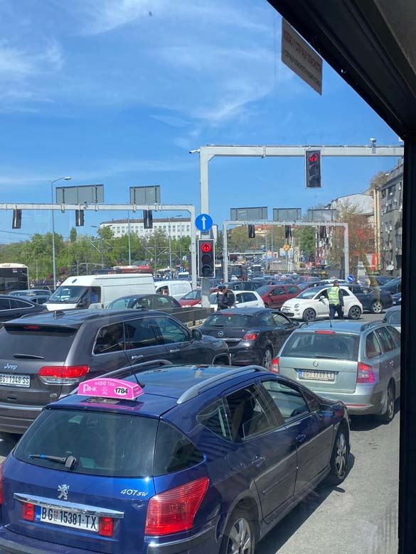 Velike gužve zabeležene su na mostu Gazela u pravcu ka centru grada, a saobraćaj na Slaviji je u totalnom zastoju. Gužve ima i u Takovskoj ulici takođe u pravcu ka centru grada.