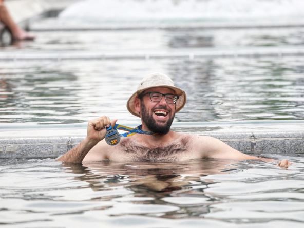 I dok su na maratonu trčali i ljudi sa maskama, slepi, čovek sa bebom i drugi takmičari koji su privukli poglede okupljene publike, mi smo imali priliku da upoznamo jednog Amerikanca koji kaže da je oduševljen Beogradom, da je vredno trenirao za trku i da je uživao u osveženju nakon napornog dana, na Trgu Nikole Pašića.