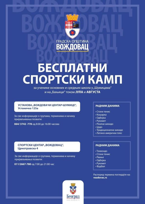 Sportski centar „Voždovac“ i „Voždovački centar – Šumice“, u saradnji sa gradskim Sekretarijatom za sport i omladinu i Gradskom opštinom Voždovac pripremili su program koji će dečaci i devojčice pohađati ovog leta.