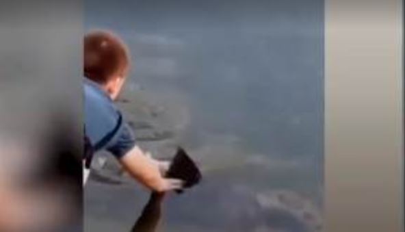 Mladić sa snimka je čak uspeo da uđe u vodu i da pomiluje ribu.