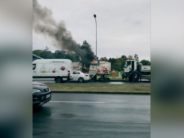 Prema prvim informacijama, zapalilo se vozilo, odnosno mašina za asfaltiranje puteva.