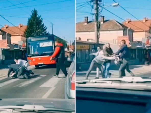 Kako se može videti na snimku koji kruži društvenim mrežama, grupa muškaraca potukla se nasred ulice i blokirala saobraćaj. Kako se može videti, jedna žena je pokušala da ih razdvoji, ali je tom prilikom pala na beton i udarila glavu.