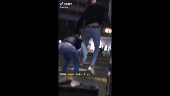 "Skidaj, skidaj, a sad beži", viče jedan od mladića dok ostali skandiraju "To, to!".